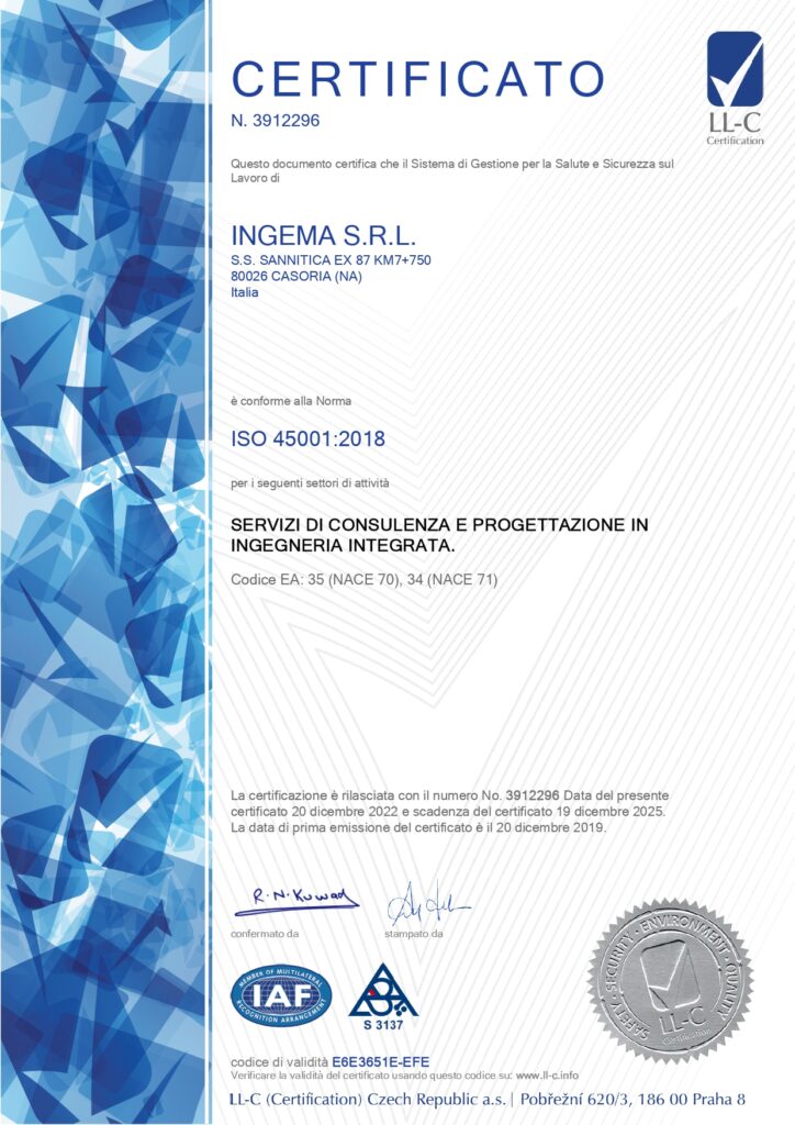 Sicurezza certificato secondo la norma ISO 45001:2018, anch’esso